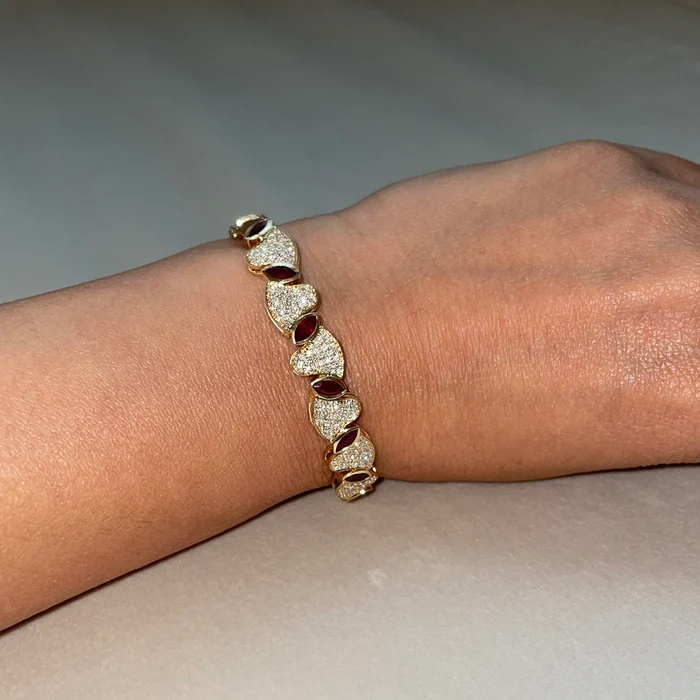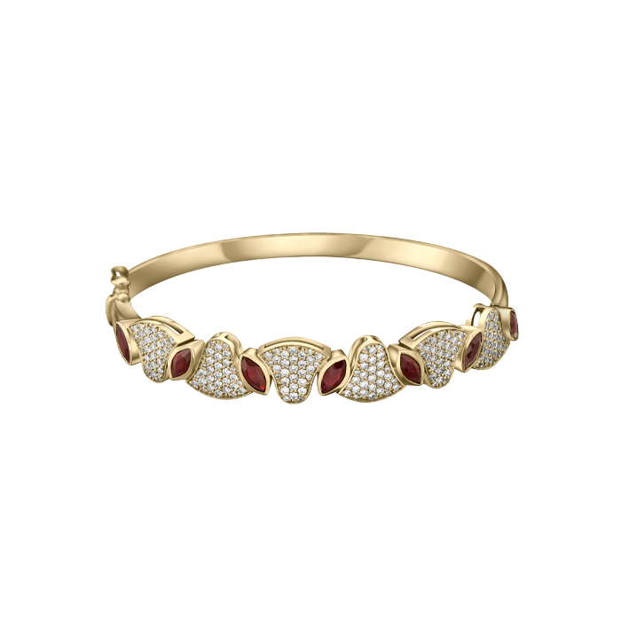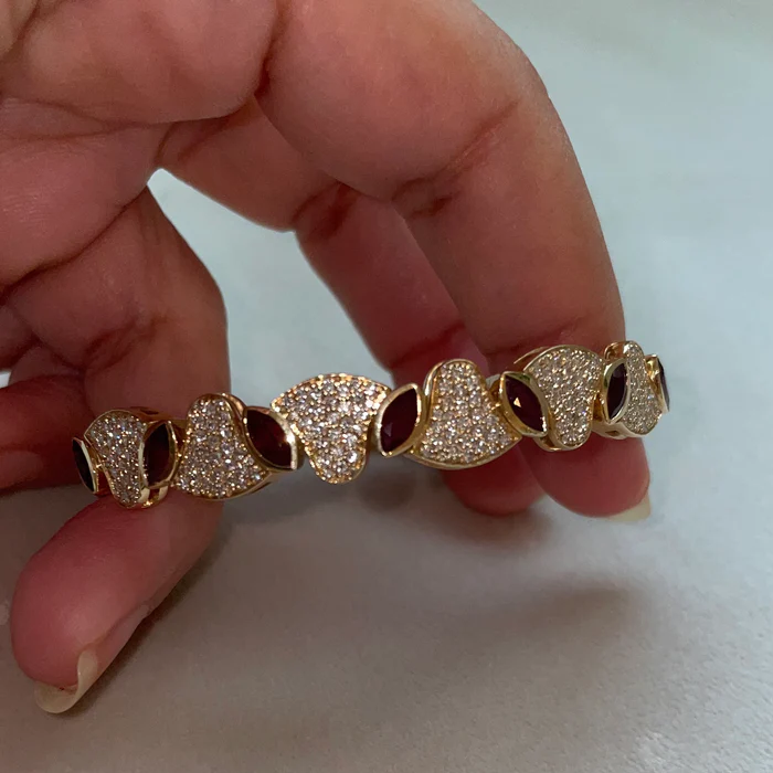 This beauty weights 23 grams of 18 karat gold, contains 7 natural rubies that weight 1.8 carats.