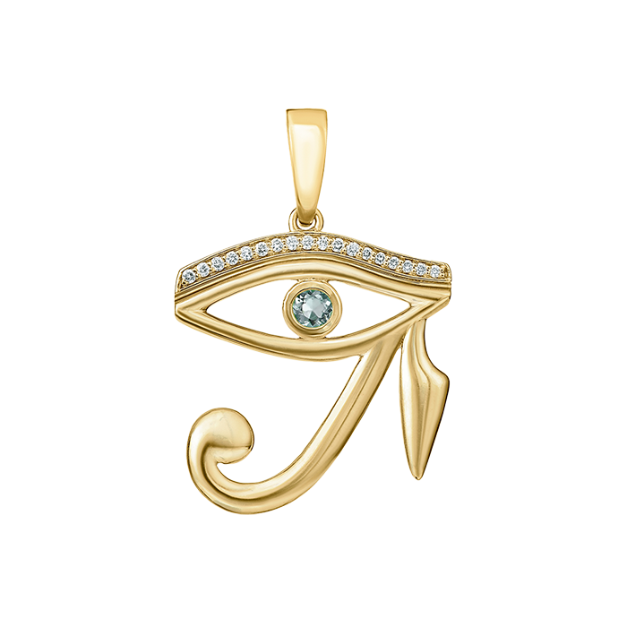 Horus Eye Charm Pendant with Aquamarine and Diamonds