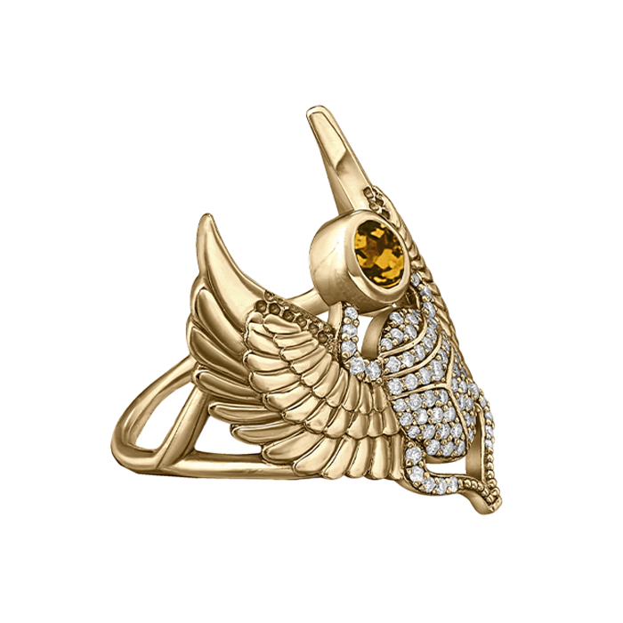 The version of The Khepri with Pearl ring but with more intrisic diamonds and a citrine.